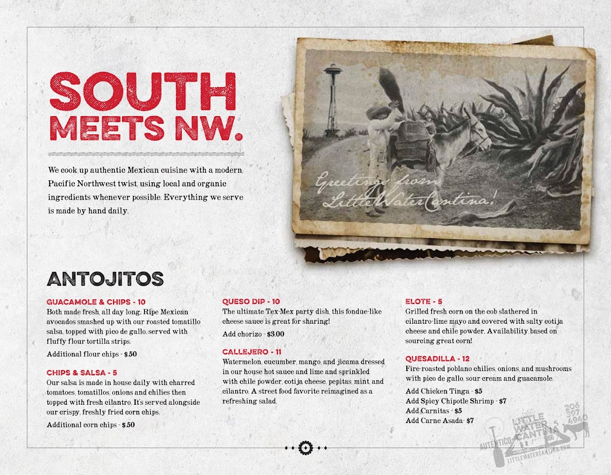 Little Water Cantina, located on Eastlake Avenue in Seattle, offers a delightful blend of authentic Mexican cuisine and breathtaking waterfront views. Renowned for its vibrant atmosphere and warm hospitality, this cozy cantina features a diverse menu with standout dishes like the Wild Boar Burrito and Shrimp Tacos, both praised for their bold flavors. Guests rave about the fresh, crispy chips and refreshing hibiscus-lime agua fresca. While the dining experience leans towards self-service, the food quality and picturesque setting make it a beloved spot for casual gatherings or special events. Little Water Cantina truly captures the essence of community and culinary delight.